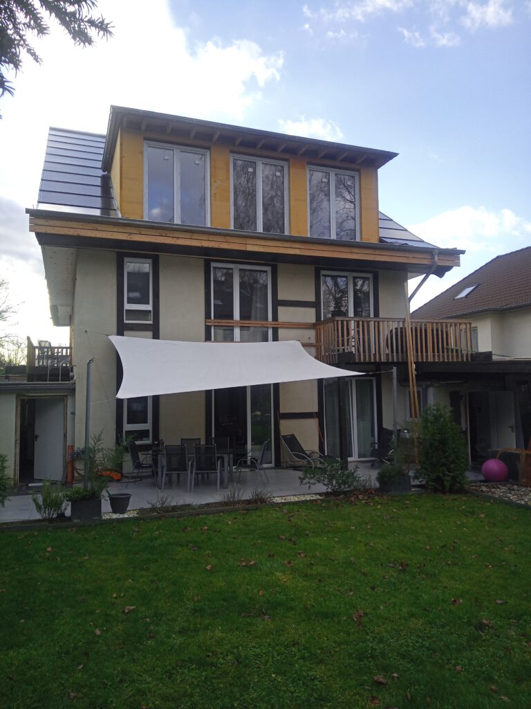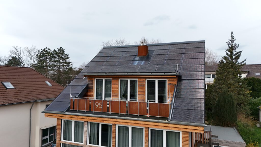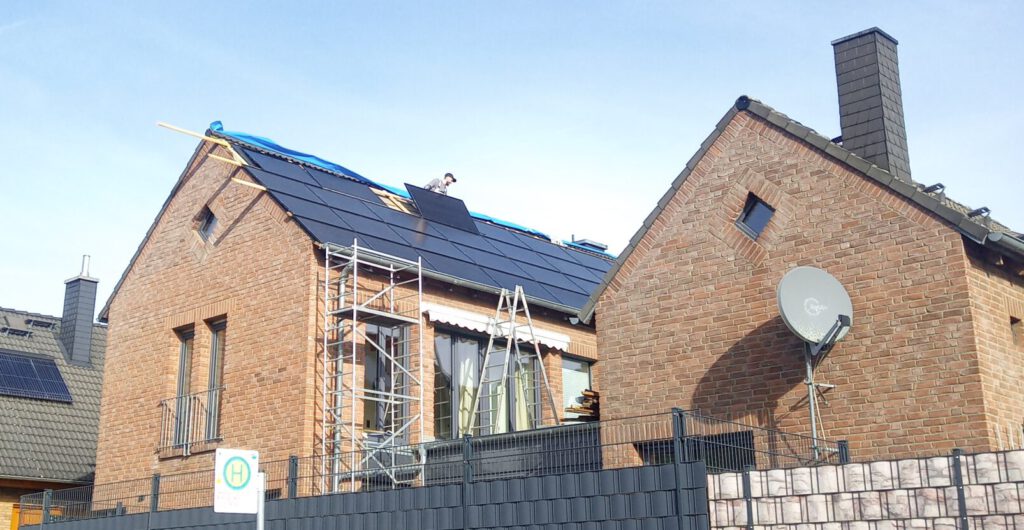 Solar-concept befasst sich mit Photovoltaik für gehobene Ansprüche. Wir konzeptionieren ausschließlich hocheffiziente und nachhaltige Ganzdachanlagen mit Komponenten europäischer Anbieter. In Beuel am Rhein haben wir wohl eine der größten privaten PV-Anlagen Bonns realisiert. Mit 30 KWP produziert das Haus deutlich mehr Strom als es verbraucht.
